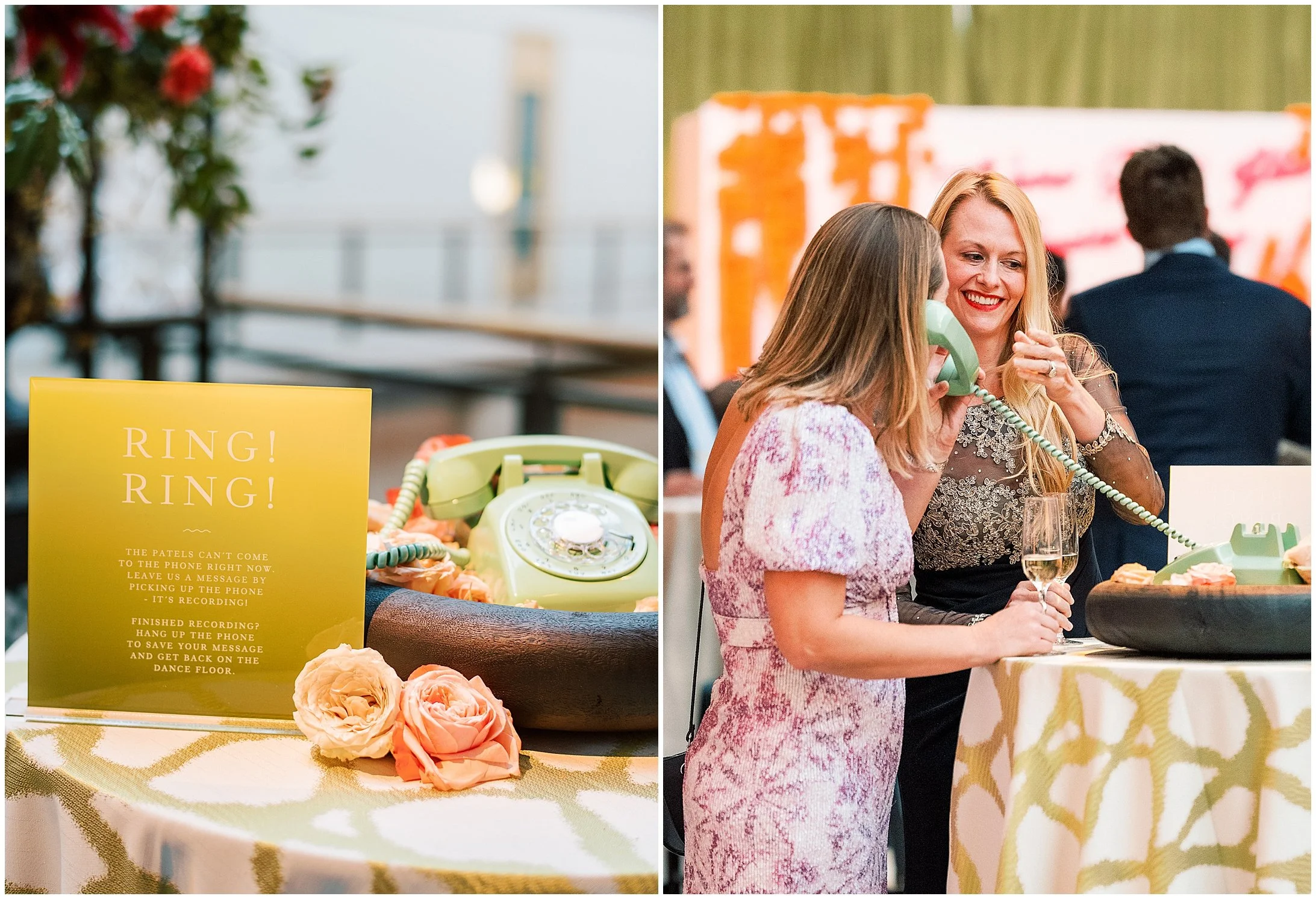 After the ceremony, guests made their way to the San Francisco Ferry Building for an unforgettable evening. Cocktail hour featured a custom circular wraparound bar, where guests enjoyed drinks and took in the breathtaking views of the bay. The reception space itself was a masterpiece of bold design, with chartreuse drapes lining all four walls, creating a dramatic and immersive setting.